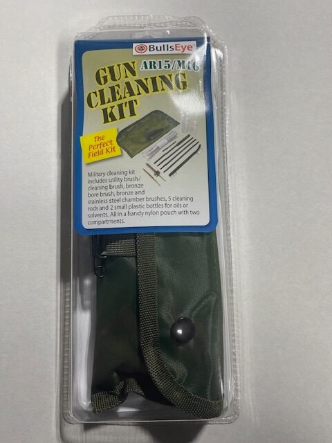 This basic Field Cleaning Kit For AR-15 .223 / 5.56 Cal. from Bulls Eye should have a home in your range bag. Also, will clean .22 Cal. rimfire rifles except Chamber Brush is unnecessary. These compact, easy-to-carry kits are compact and effective. Everything needed for a complete cleaning is included in the rugged olive-drab nylon pouch with snap closures and compartments for rods and accessories. Kit includes the following: utility brush, cleaning brush, bronze bore brush, bronze and stainless-steel chamber brushes, 5 pc cleaning rod and 2 small plastic bottles for oil or solvents.