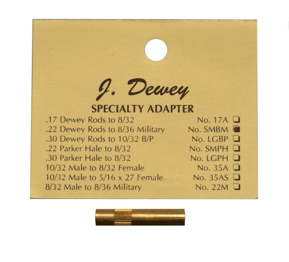 This little brass piece from Dewey is the necessary link to connect 8/32 thread .22 Cal. Rods to 8/36 thread military style brushes. Machined from solid brass, and made in the USA.